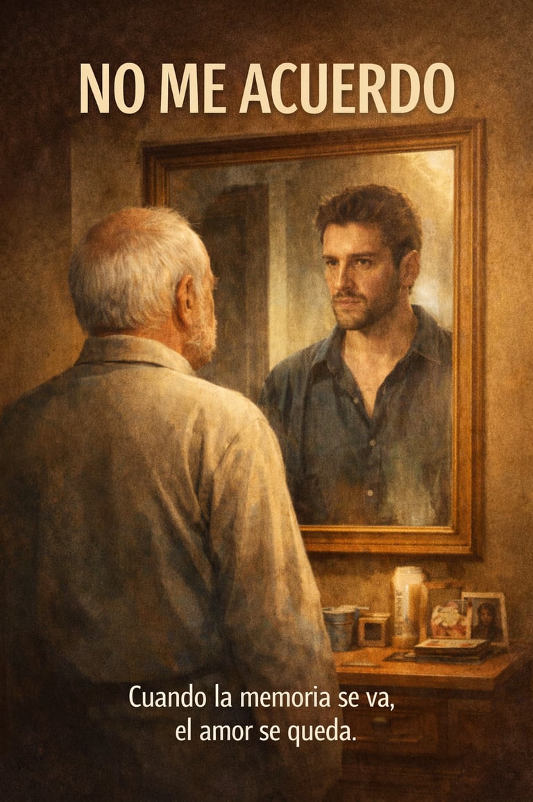 Sinopsis: No me acuerdo es una serie inspirada en hechos reales que narra la convivencia entre un hijo y su padre cuando a este último le diagnostican Alzheimer. El padre, un hombre sencillo, artesano, poco dado a expresar emociones pero extraordinariamente válido con las manos, comienza a mostrar pequeños olvidos que la familia atribuye al paso del tiempo. Lo que al principio parece una “chochez” inofensiva acaba revelándose como el inicio de una enfermedad implacable.