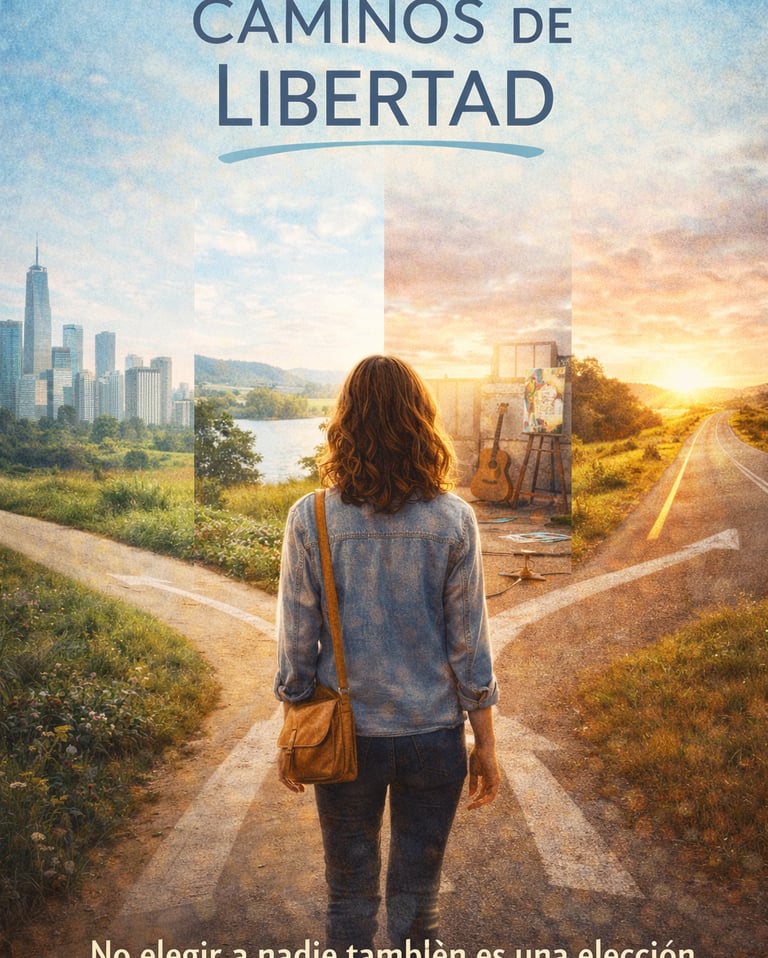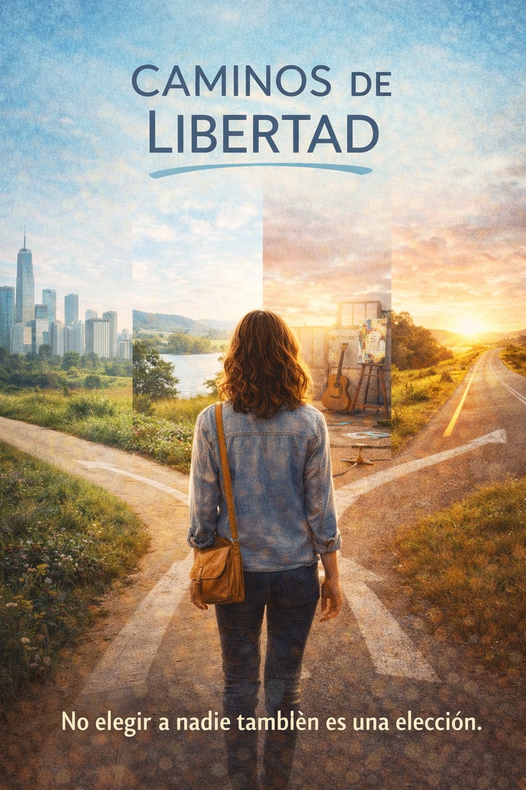 Sinopsis: Caminos de Libertad sigue a una mujer que, agotada por relaciones tóxicas y dependencias emocionales, decide emprender un experimento radical: vivir distintas vidas alejadas por completo del amor romántico. En lugar de buscar una nueva pareja, se sumerge en identidades alternativas que le permiten explorar quién es sin ataduras afectivas.