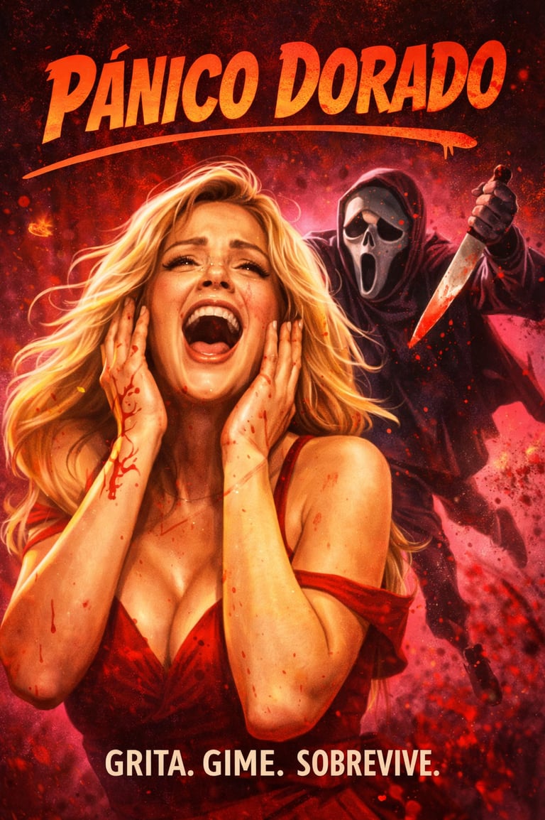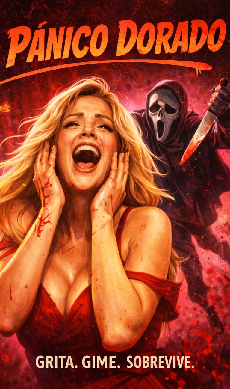 Sinopsis: Pánico Dorado es una serie de comedia slasher que parodia sin complejos los códigos clásicos del cine de terror, con una protagonista tan despreocupada como hipersexualizada y un asesino enmascarado que, lejos de imponer respeto, parece ir siempre un paso por detrás.