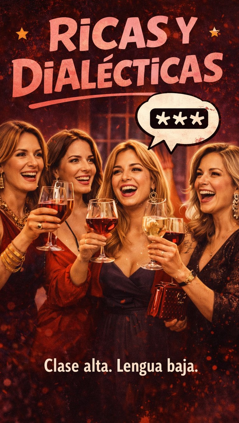 Sinopsis: Ricas y Dialécticas sigue a un grupo de mujeres adineradas que se mueven entre eventos exclusivos, terrazas de lujo y restaurantes de alta gama, donde todo parece refinado… hasta que abren la boca. Lejos de la imagen impecable que proyectan, estas mujeres destacan por su humor bajuno, su lenguaje crudo y una capacidad infinita para desmontar las apariencias.